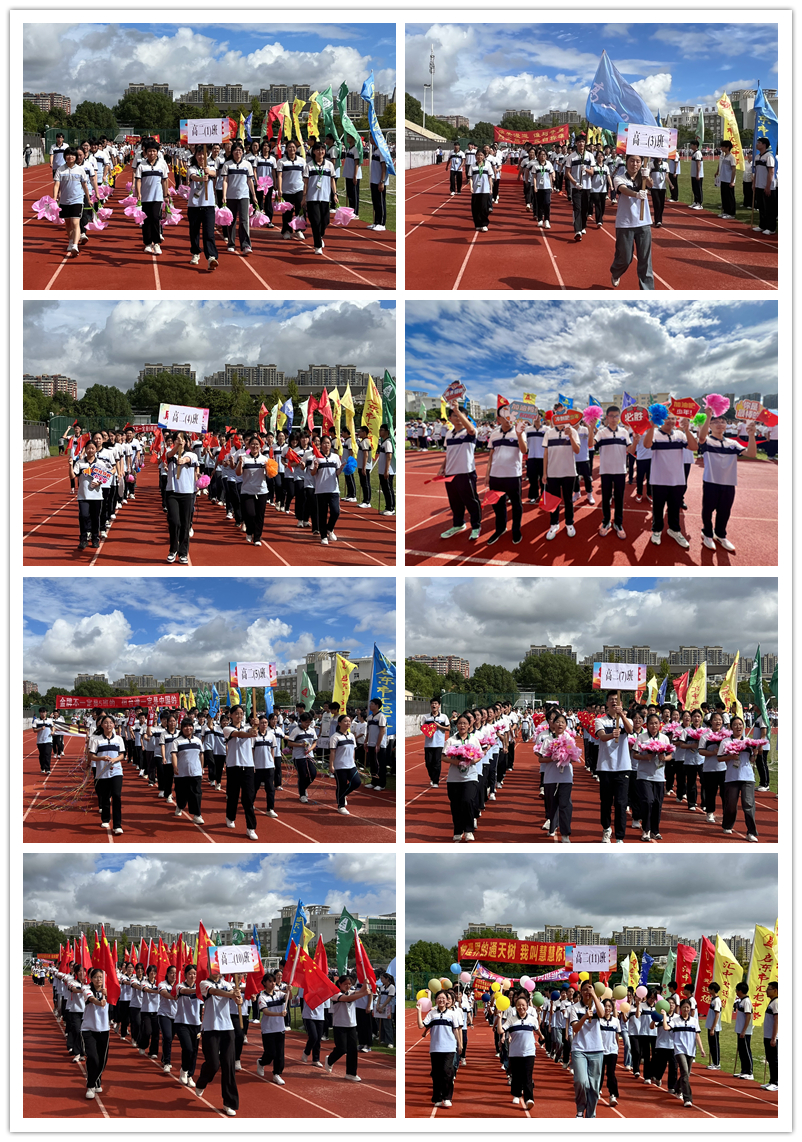 今日的校园洋溢着青春的活力与蓬勃的朝气,全校各班级在操场整齐列队。开幕式在激昂的《运动员进行曲》中拉开帷幕。国旗队、校旗队、彩旗队步伐铿锵,气宇轩昂,率先走过主席台。紧随其后的是各班级组成的特色方阵,创意与活力碰撞出耀眼火花。高一的同学们用灵动的步伐展现初入校园的朝气;高二方阵或挥舞彩旗,或手持花球,口号嘹亮,创意纷呈;高三学子跑步进场,用沉稳的姿态传递出冲刺学业与挑战赛场的双重决心。全体同学用矫健的步伐踏出青春的节拍,用自信的笑容诠释“绿动”的内涵,充分展现了汇中学子如青苗般茁壮、向上的精神风貌。