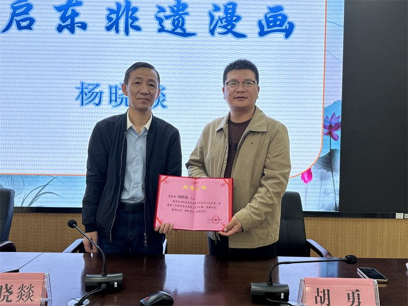 一册书籍一份情,一缕书香一份心。此次活动的捐赠者杨晓燚老师长期从事非遗保护研究工作,多次与汇龙中学展开合作,结下了深厚的情谊,此次杨老师将向我校捐赠300册《启东非遗漫画集》。