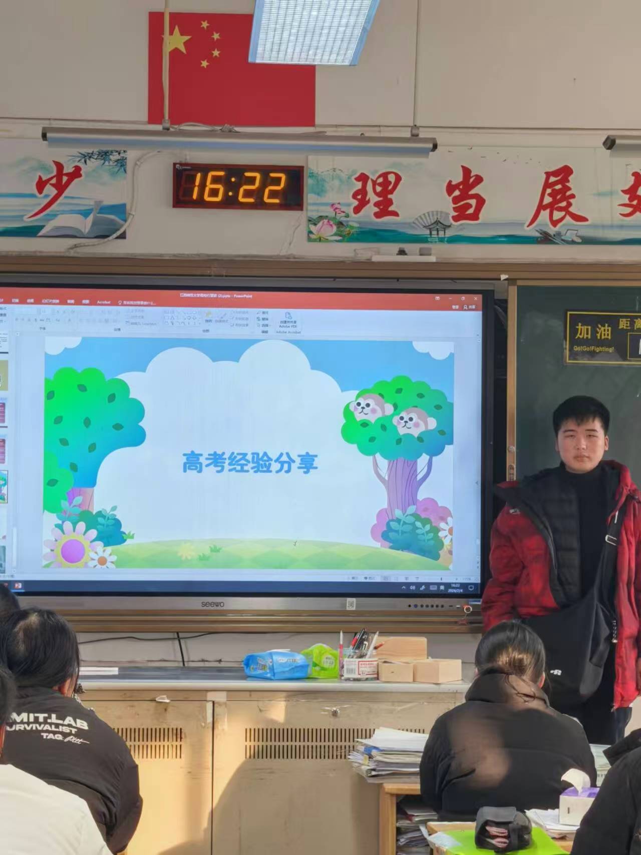 活动现场暖意融融,学长学姐们化身“领航者”,带来了满满干货与真挚感悟。备考分享环节,他们毫无保留地拆解学科高效复习技巧、时间管理妙招,细致讲解重难点突破策略与错题整理方法,那些经过实践检验的“实战经验”,为学弟学妹们厘清了备考思路;心态调节部分,他们分享冲刺阶段的压力疏导心得、低谷期自我鼓励的小窍门,结合家人朋友支持的暖心故事,让备考路上的焦虑与迷茫渐渐消散;成长感悟与大学分享中,学长学姐们畅谈百日冲刺教会的坚持与韧性,描绘理想大学的校园生活、学科特色与专业发展路径,为学弟学妹们勾勒出清晰的奋斗蓝图;互动问答环节更是气氛热烈,面对备考细节、志愿填报、能力积累等疑问,学长学姐们耐心解答、倾囊相授,每一句真诚叮嘱都凝聚着对母校的眷恋与对学弟学妹的期许。
