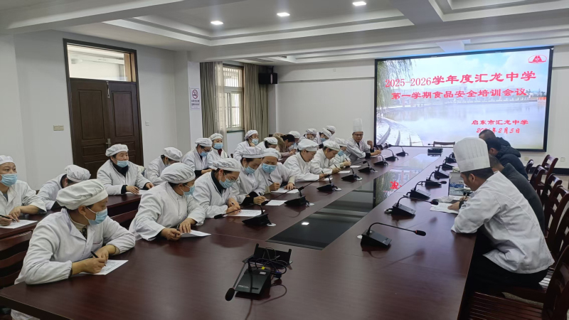 2026年2月5日,启东市汇龙中学召开 2025~2026 年度第一学期食品安全培训会及食堂结束工作会议。全体食堂职工参加会议。胡勇校长出席会议并讲话。