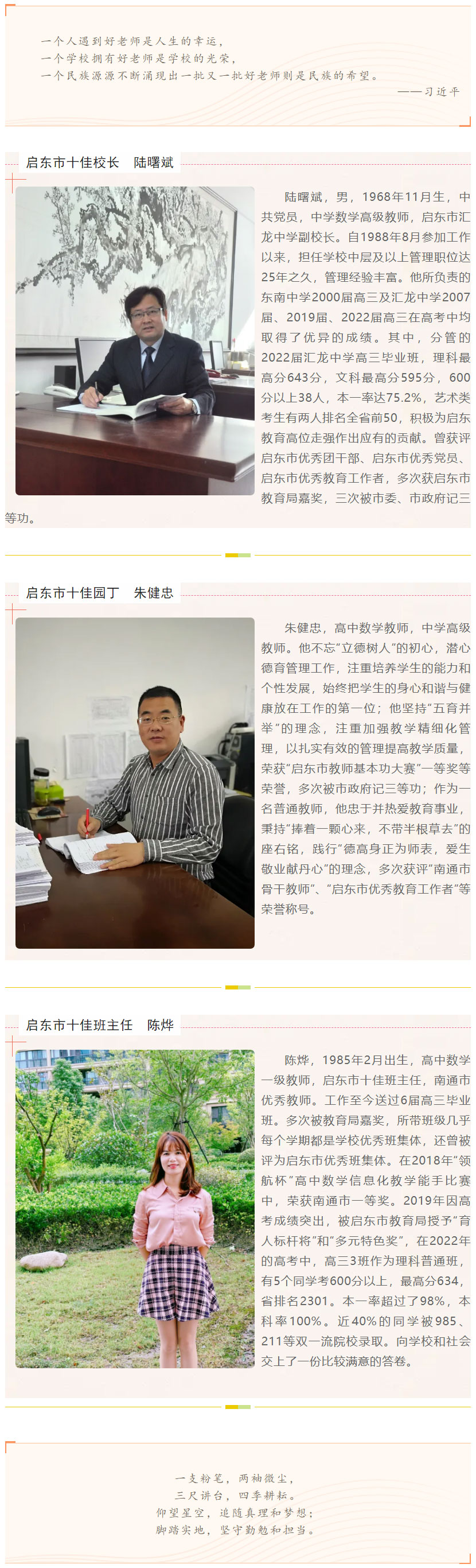 赓续育人初心,弘扬师者榜样——启东市汇龙中学2021-2022学年度优秀教师风采展示(一)