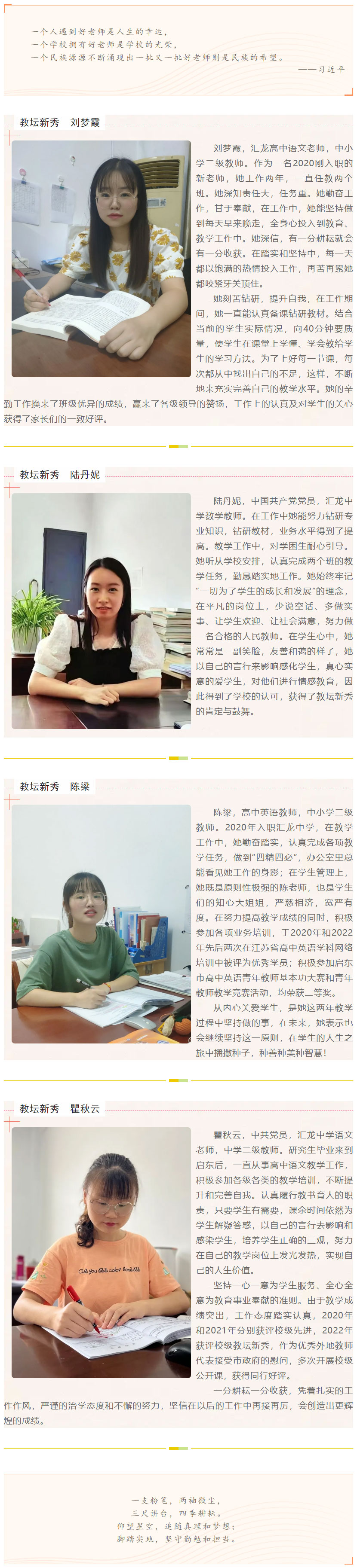 赓续育人初心,弘扬师者榜样——启东市汇龙中学2021-2022学年度优秀教师风采展示(九)