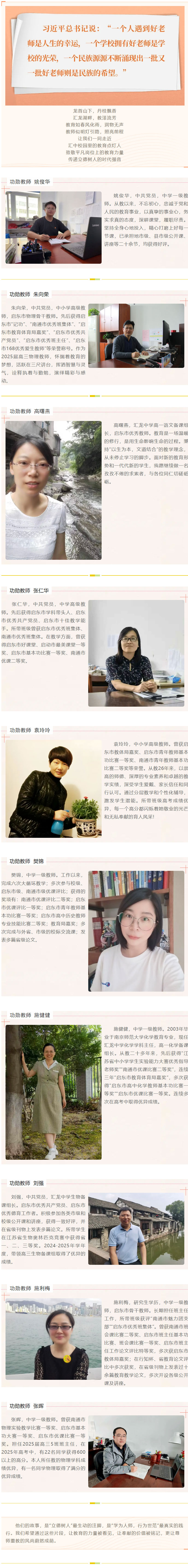 以教育家精神铸魂强师,谱写教育强国建设华章——启东市汇龙中学2024-2025学年度优秀教师风采(二)