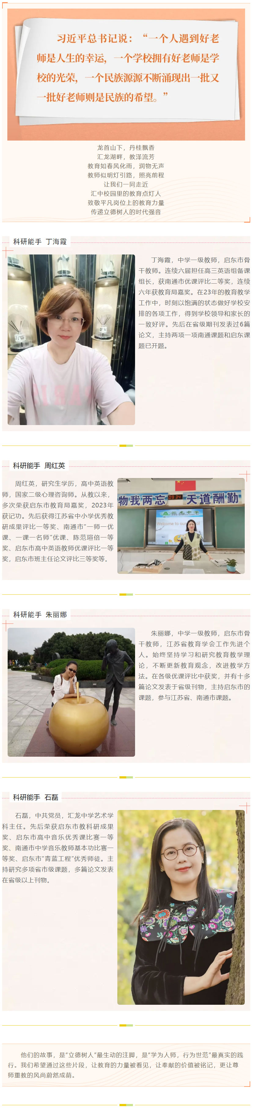 以教育家精神铸魂强师,谱写教育强国建设华章——启东市汇龙中学2024-2025学年度优秀教师风采(七)