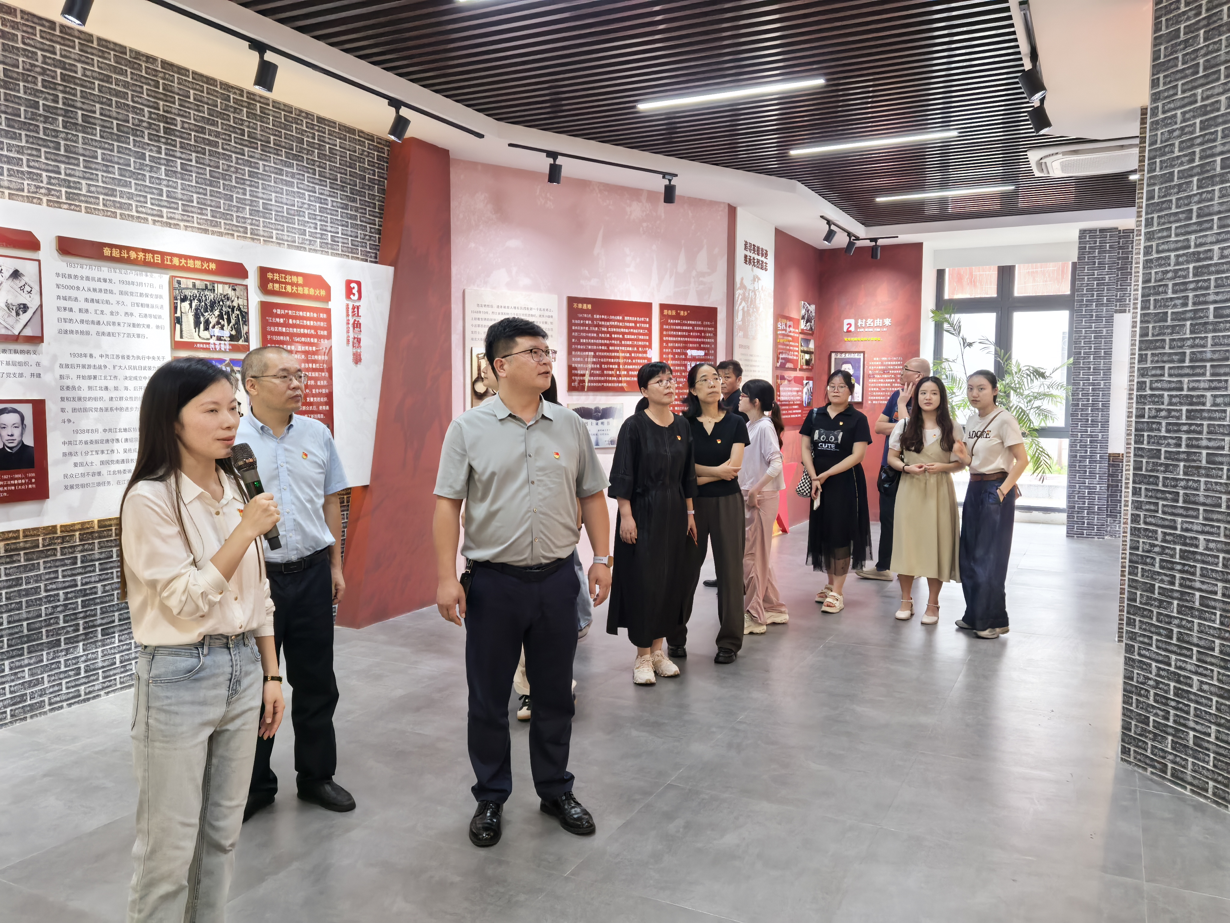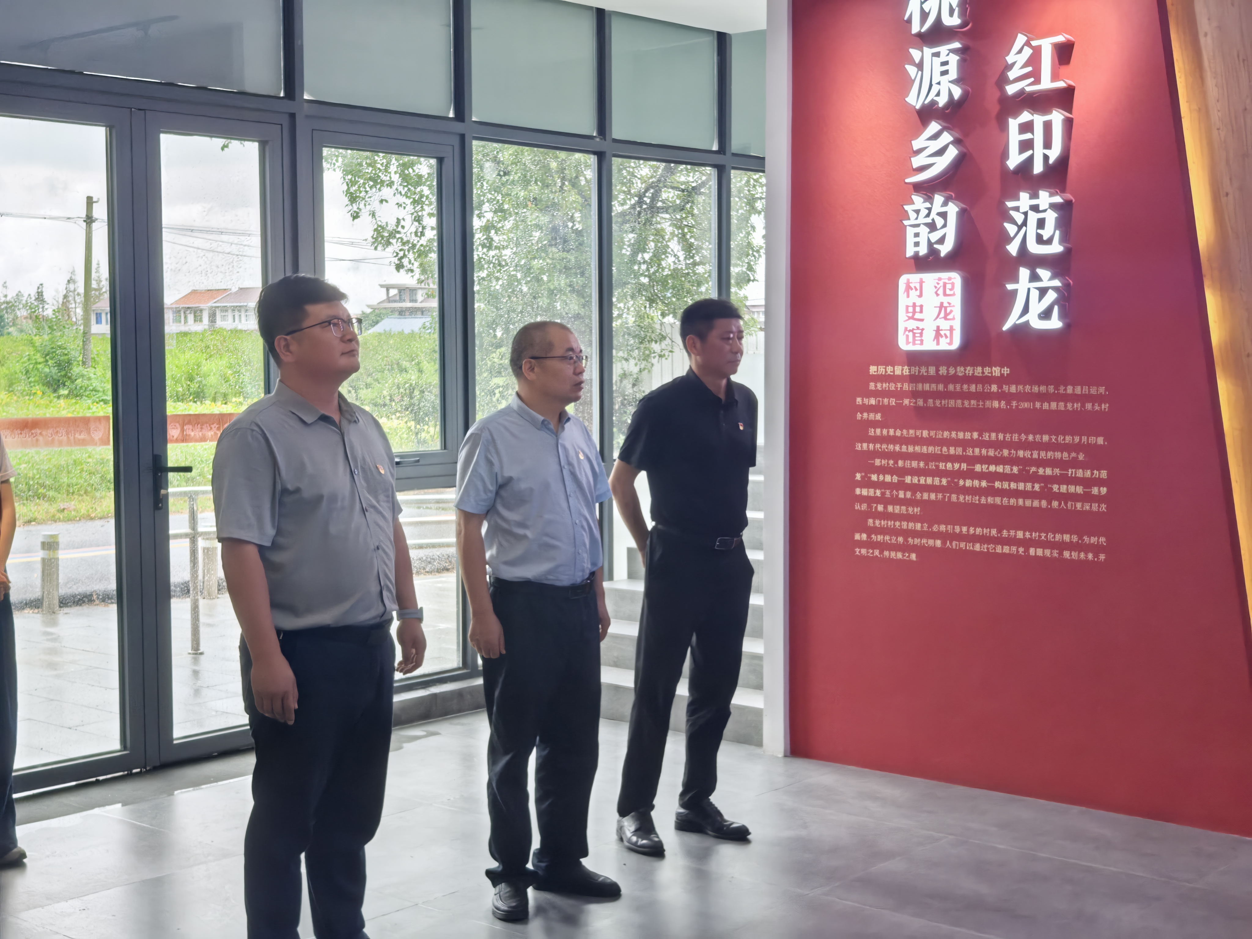 活动首站来到因范龙烈士而命名的吕四港镇范龙村。在村史馆和党建文化主题公园,党员们认真聆听了范龙烈士的英雄事迹,透过一幅幅历史图片和一件件实物展陈,深切感受革命先辈为民族解放事业英勇献身的崇高精神。党员们深刻体会到,“赓续精神血脉”就是要将革命先烈的奋斗精神,融入到为人民创造美好生活的具体实践中。