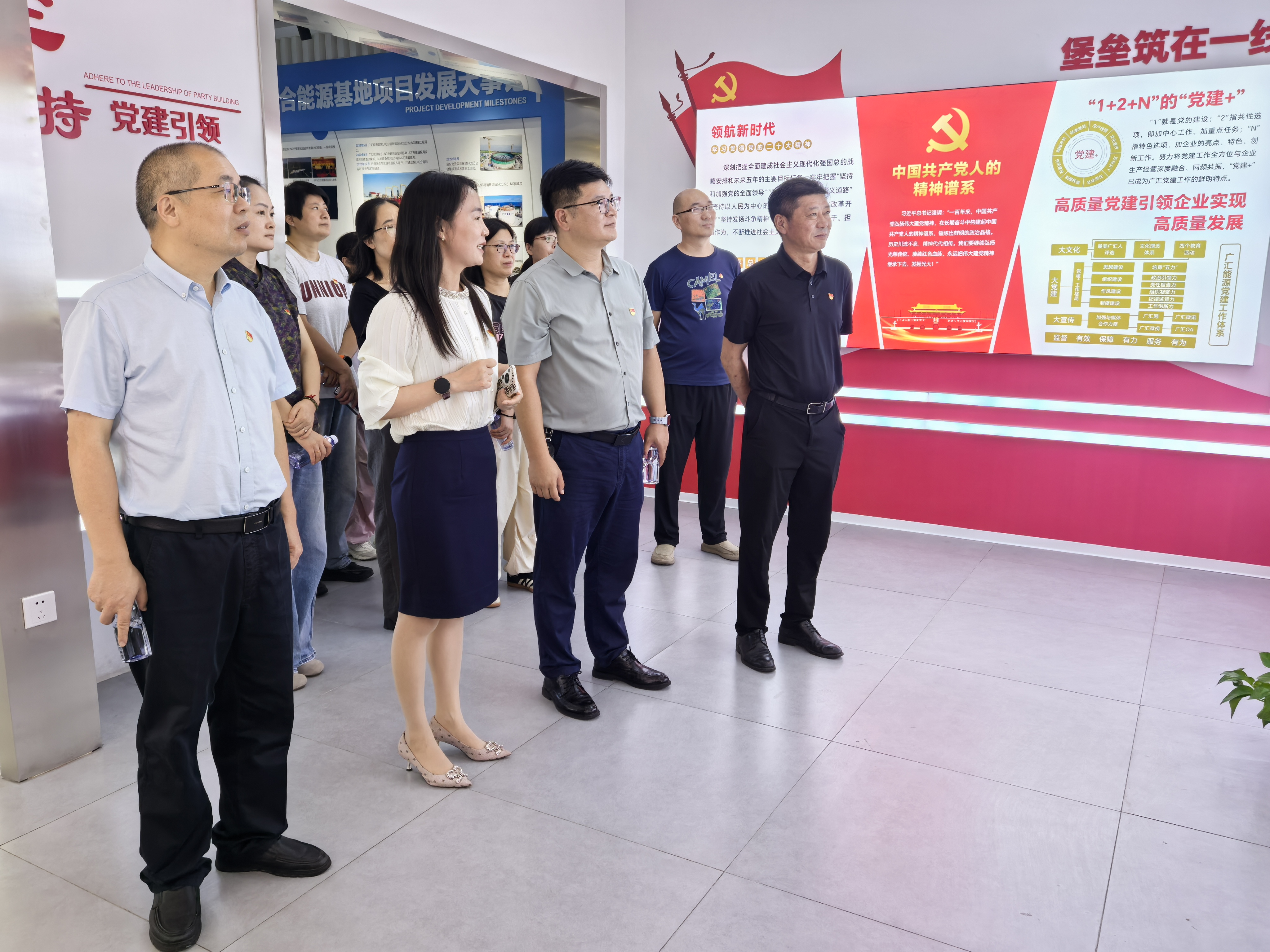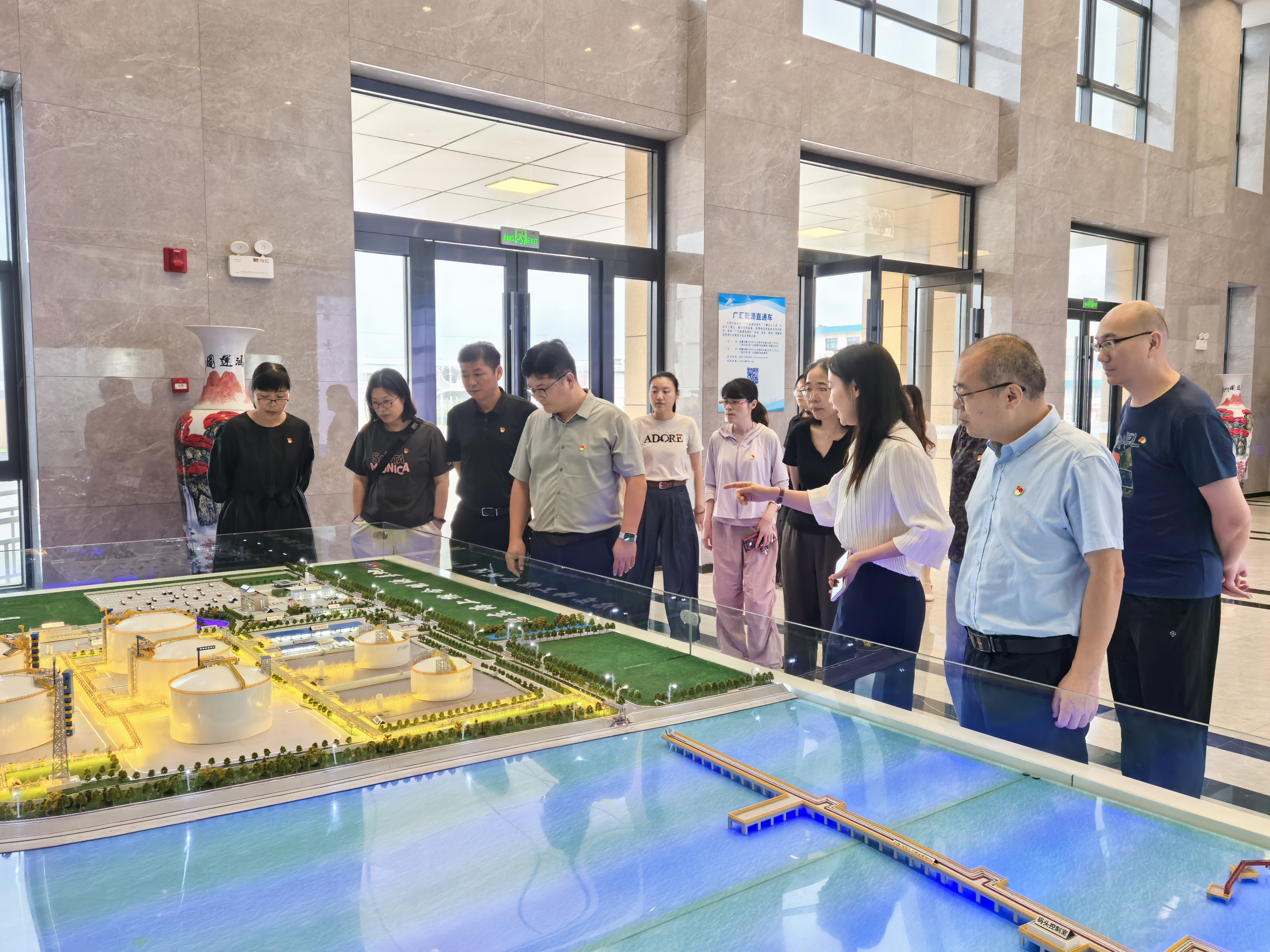 活动的最后一站是广汇能源综合物流发展有限责任公司。巨大的LNG储罐巍然耸立,彰显着国家能源战略储备的雄厚基础。党员们认真听取项目介绍,了解到项目全部建成后将成为年周转量超600万吨的LNG综合物流基地,对于优化区域能源结构、践行“双碳”战略具有重大意义。